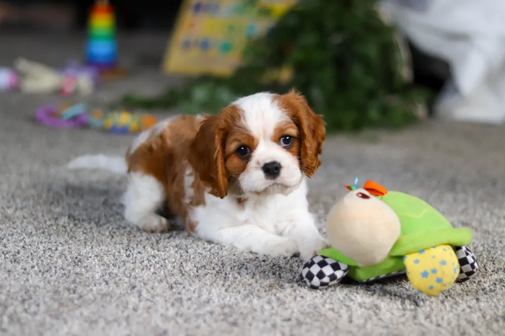 this fun-loving Cavalier boy is always ready for a good time—whether it’s chasing toys or cuddling up after playtime. Start the new year with laughter, energy, and unconditional love from this spirited pup!