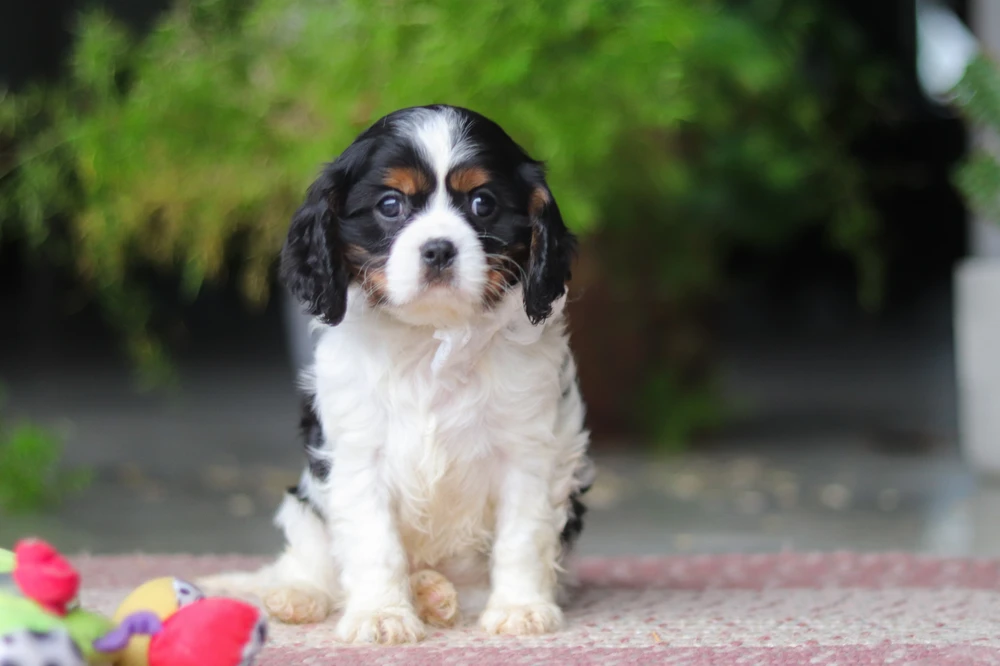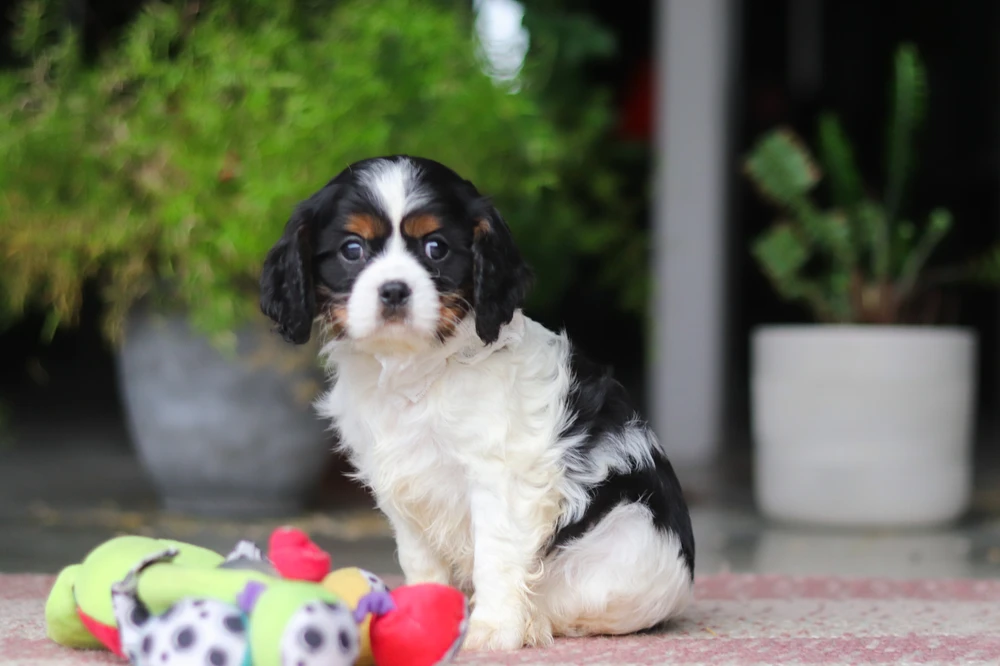 Huxley is a precious tri-color Cavalier with a soft, fluffy coat of silky black, bright white, and warm tan accents that frame his sweet, soulful eyes. There’s something about him that just pulls at your heart—the kind of puppy that quietly becomes the best part of your day. Imagine coming home to that little face, those gentle eyes, and a loyal companion who’s always ready to be by your side. Life feels a little fuller, a little warmer… with Huxley in it.