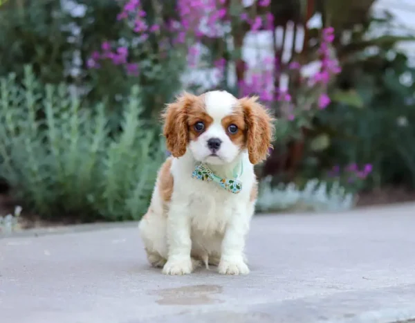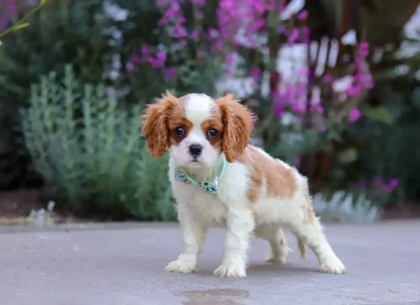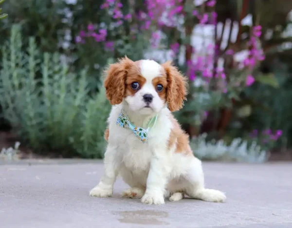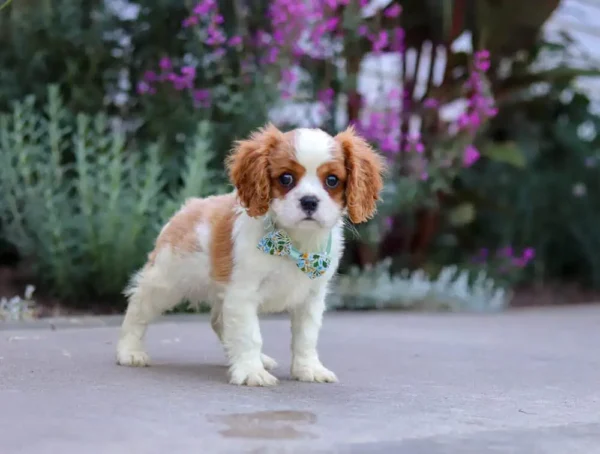 Ian is a charming Blenheim-colored Cavalier with a playful personality and a heart full of friendliness. He loves making new friends—whether it’s people, pets, or anyone willing to toss a toy his way! With his fun-loving spirit and easygoing nature, Ian is the kind of puppy who brings joy to every room he enters. If you’re looking for a happy, friendly companion, Ian is ready to brighten your days!