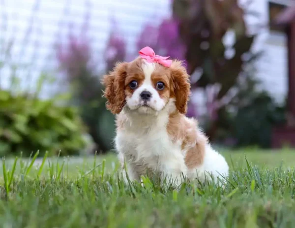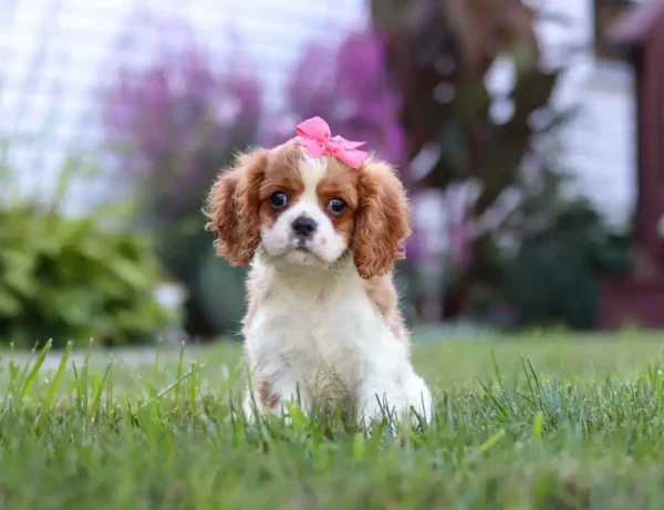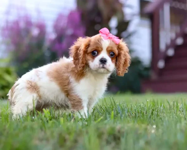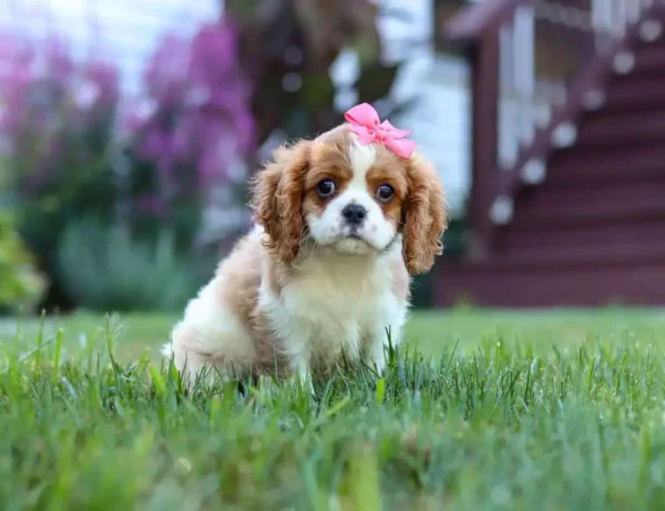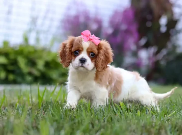 Italee is a Blenheim-colored Cavalier puppy with a bright personality and playful spirit. She’s incredibly social, loves attention, and is always ready to explore, play, or tag along for the day’s fun. With her sweet nature and endless curiosity, Italee is sure to bring joy, laughter, and heartwarming memories to any family lucky enough to call her their own.