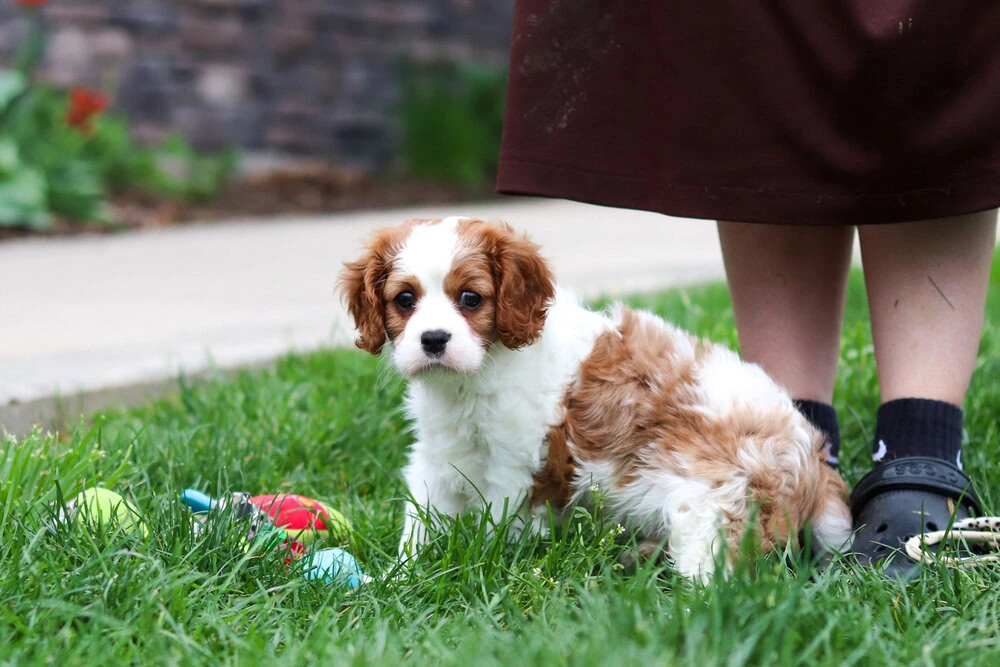 she is a beautiful Blenheim Cavalier with warm chestnut markings, a soft white coat, and the sweetest soulful eyes. She’s gentle, affectionate, and full of charm—the kind of puppy that makes every day feel a little happier. If you’re looking for a loyal companion to love, Natalie is impossible to resist.